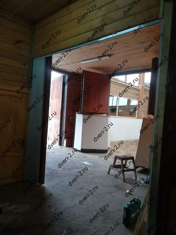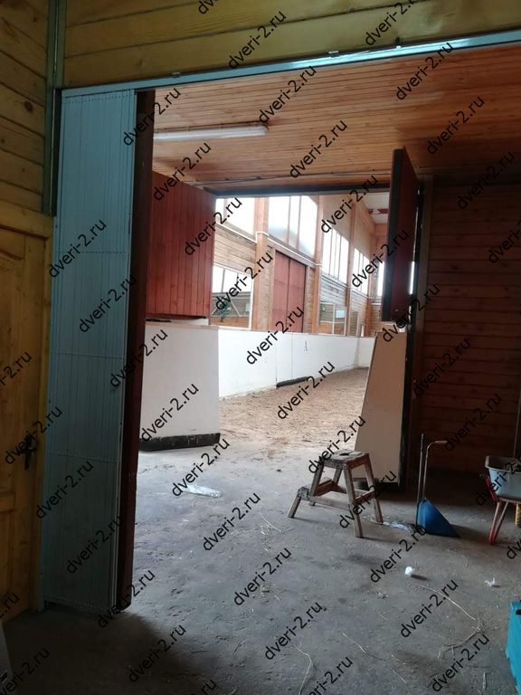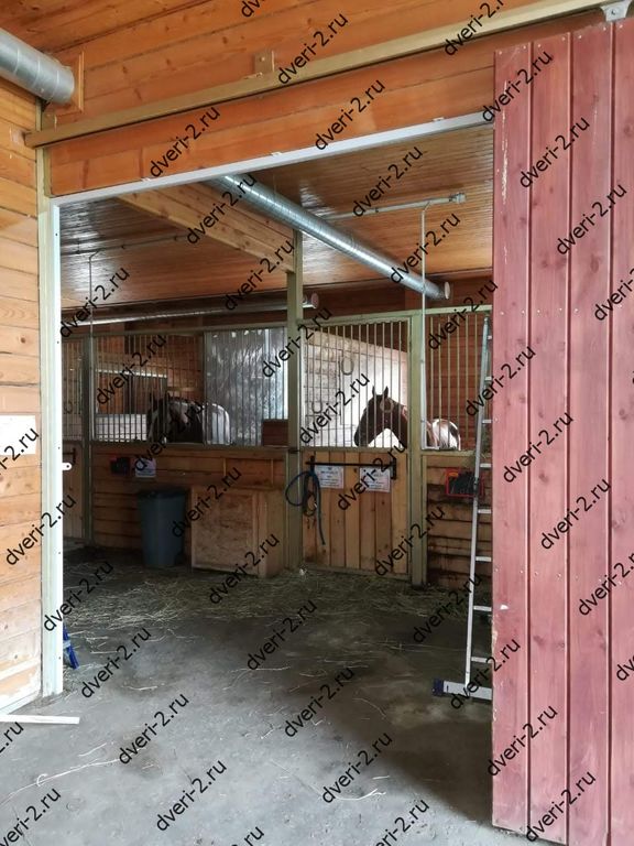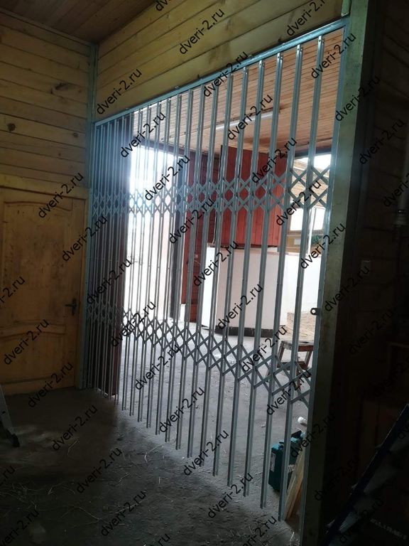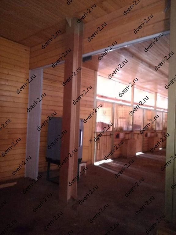 Раздвижная решетка без нижней направляющей. Установлена в конюшню для зонирования помещений.