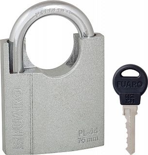 Навесной замок Fuaro PL-4475 предназначен для запирания внутренних и уличных дверей, оснащенных проушинами. Чугунный корпус с антикоррозийным покрытием. Коррозийная стойкость покрытия - 250 часов. Закаленная дужка для защиты от спиливания. Автоматическая система запирания без ключа. Работоспособность навесного замка - 250 000 циклов открывания/закрывания. В комплектацию входят 3 английских ключа с пластиковой головкой. Габаритные размеры навесного замка указаны на чертеже. Упаковка: блистер.